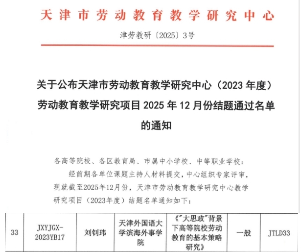学院顺利完成天津市劳动教育教学研究中心(2023年度)教学研究项目