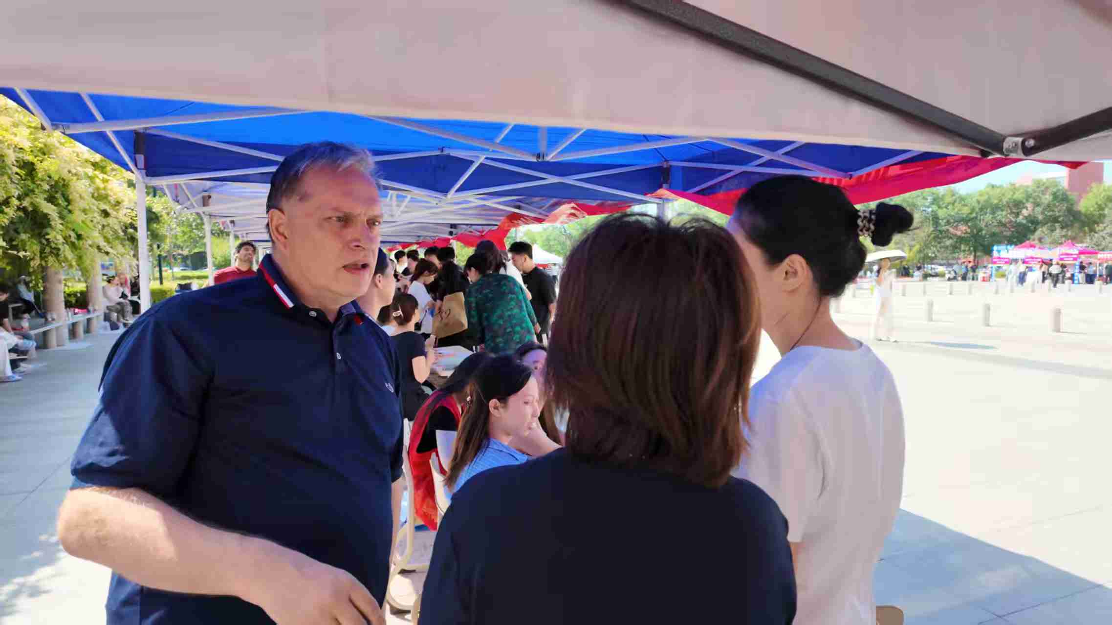 外籍教师与学生、家长进行互动