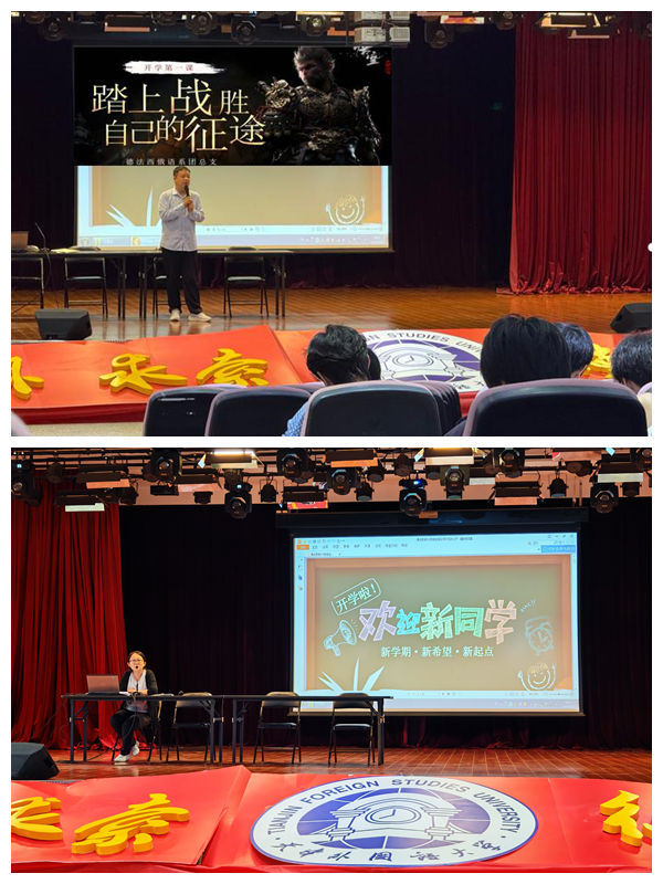 辅导员刘诗然老师在年级大会上,围绕人际关系、防范电信诈骗、宿舍安全等主题进行详实讲解。团总支书记王强老师则以知名国产游戏“黑神话:悟空”的“六根”为引,讲好开学第一课。希望在座全体新生们善于发现机遇与挑战、明辨是非黑白、培养学术嗅觉、结交良朋益友、身心健康发展、明确目标规划。