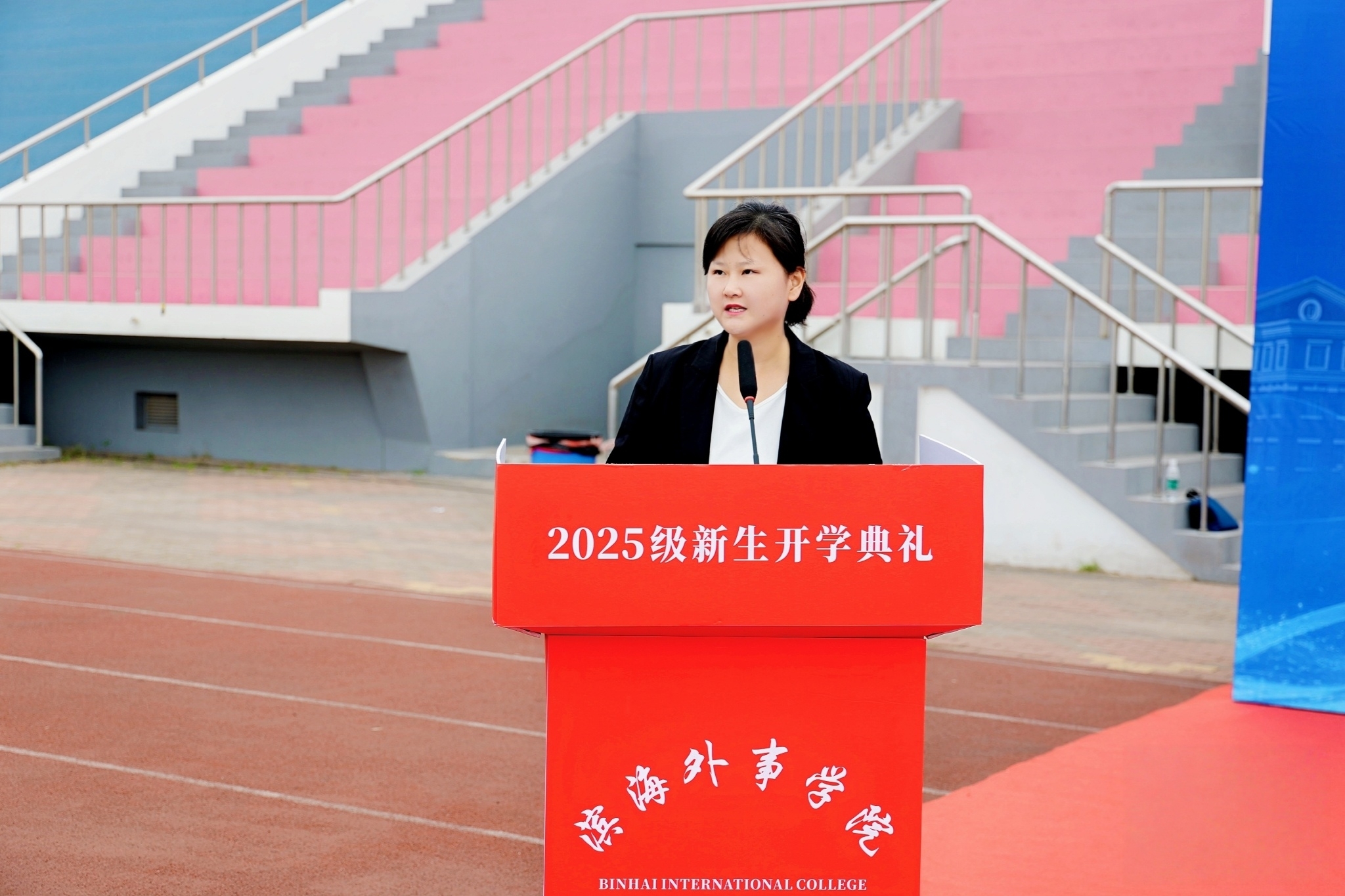 值此2025级新生入学之际,恰逢上合组织天津峰会为科教融合提供新机遇,也正值滨外深化‘AI智能+外语’特色教育的关键阶段,2025级新生将以“新燕”之姿,乘上合合作东风,在滨外的国际化教育沃土中拔节成长。他们将传承往日之序,书写未来之章,用跨文化交流能力与创新精神,唱响属于滨外的“世界之声”,奋力书写为中国式现代化挺膺担当的青春篇章。