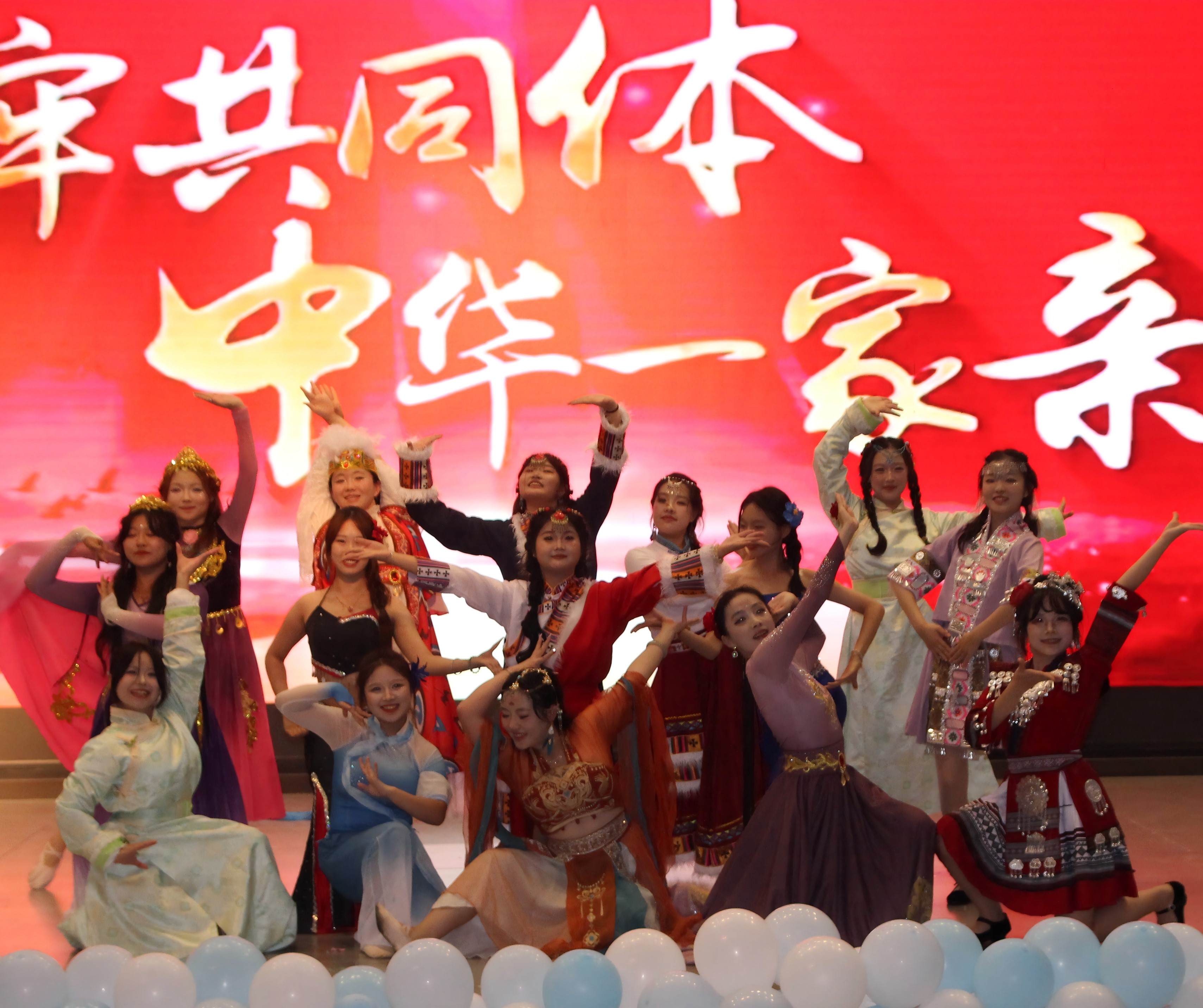 以深沉的情怀传递使命担当。器乐合奏《兰亭序》创新融合东西方乐器演绎古今风雅;2025级新生辅导员杨虹老师与学生马国滔合作rap《红色》以铿锵节奏展现新时代青年的责任意识;朗诵《永不消逝的声音》致敬坚定信仰,感人至深;歌曲《如愿》深情连缀先辈夙愿与当代青年的理想接力;民族舞《多彩中华》以优美舞姿展现民族团结的绚烂图景,将晚会推向高潮。