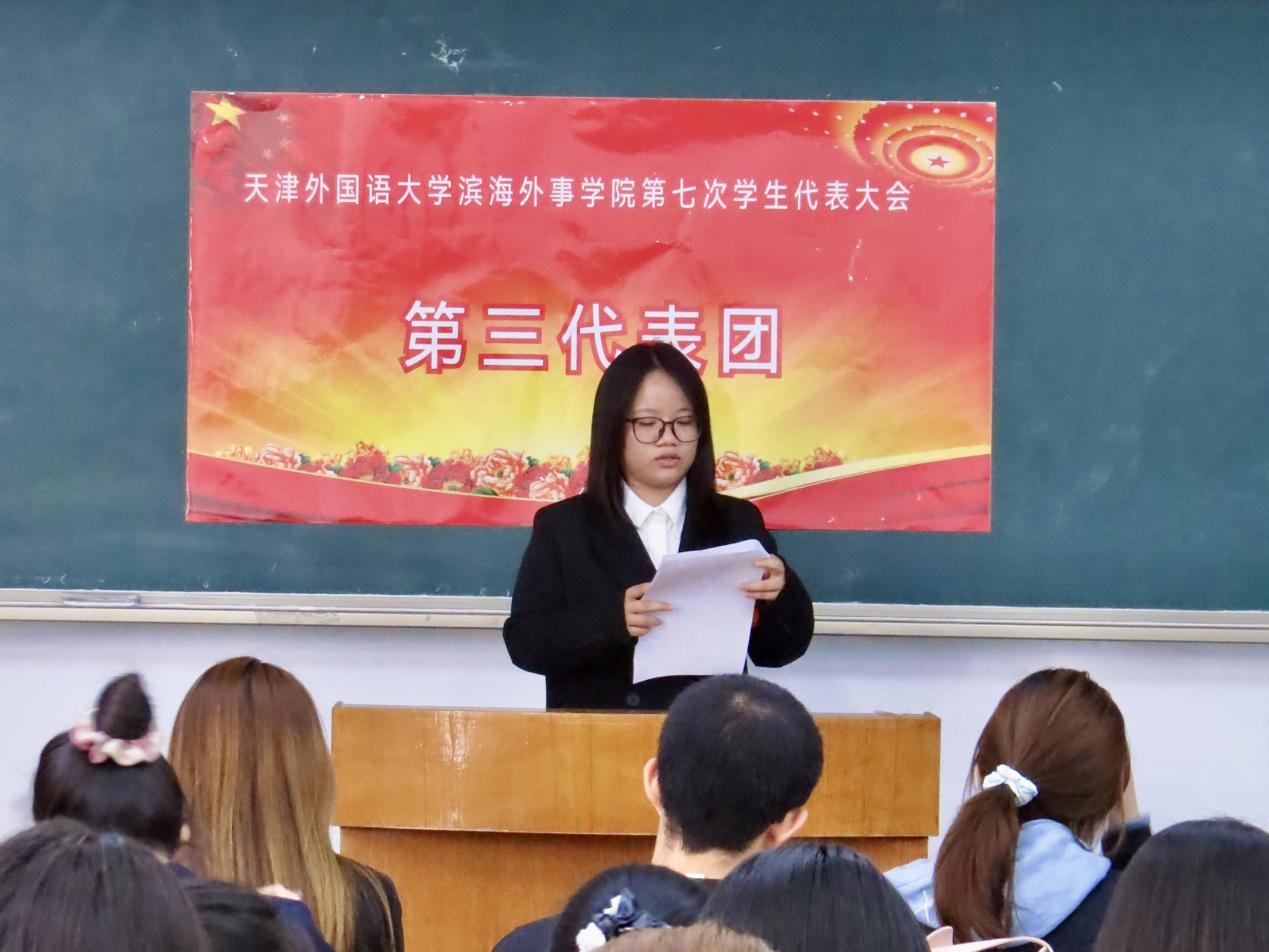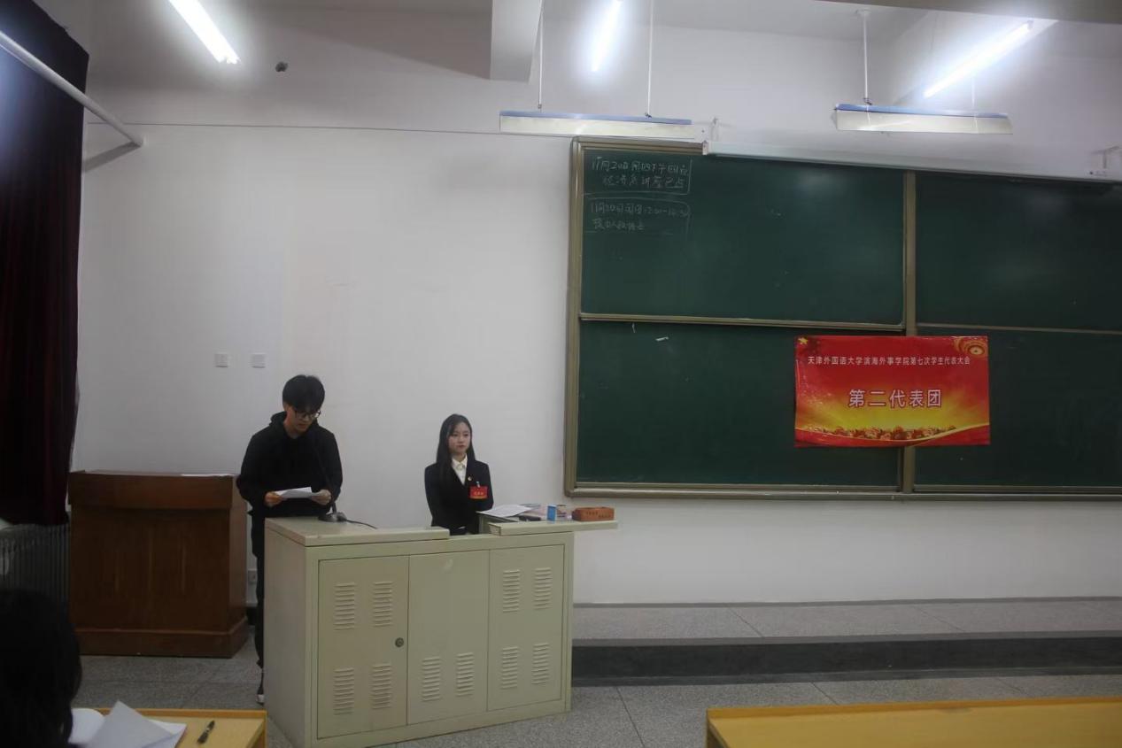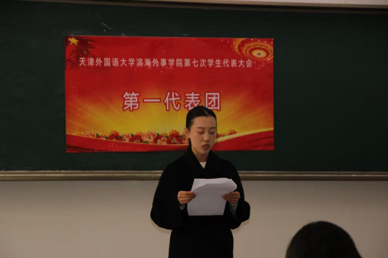11月13日,天津外国语大学滨海外事学院第七次学生代表大会召开。院党委书记王红,党委副书记、纪委书记刘红梅,各团总支书记、学生代表参加会议。