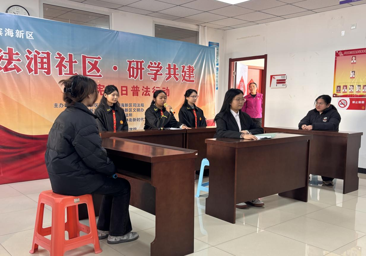 在2025年“宪法宣传周”期间,学院法学系与滨海新区司法局古林司法所、古林街道福港园社区、大港第一中学四方联合举办了“法润社区·研学共建”宪法宣传主题活动,并为“知行法社”法治研学共建基地举行了揭牌仪式。‌‌