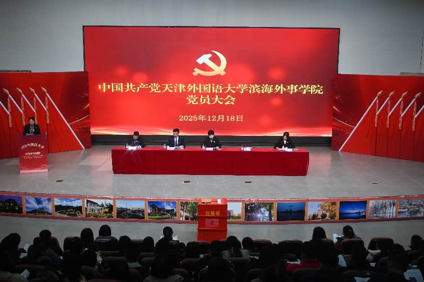 12月18日,中国共产党天津外国语大学滨海外事学院党员大会在主楼报告厅隆重召开。天津外国语大学党委常委、党委组织部部长暴奉睿,党委组织部副部长彭氡出席大会。我院民主党派代表、全体党员参加会议。