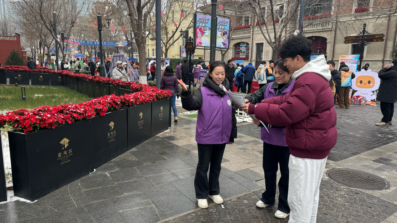 2026年3月5日,英语学院学生志愿者前往天津市河北区意式风情区参与由共青团河北区委员会主办的学雷锋做志愿共同奋进“十五五”——河北区青年志愿服务公益市集志愿服务活动。