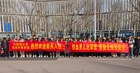 校师生代表前往滨海新区文化中心参加新兵欢送活动